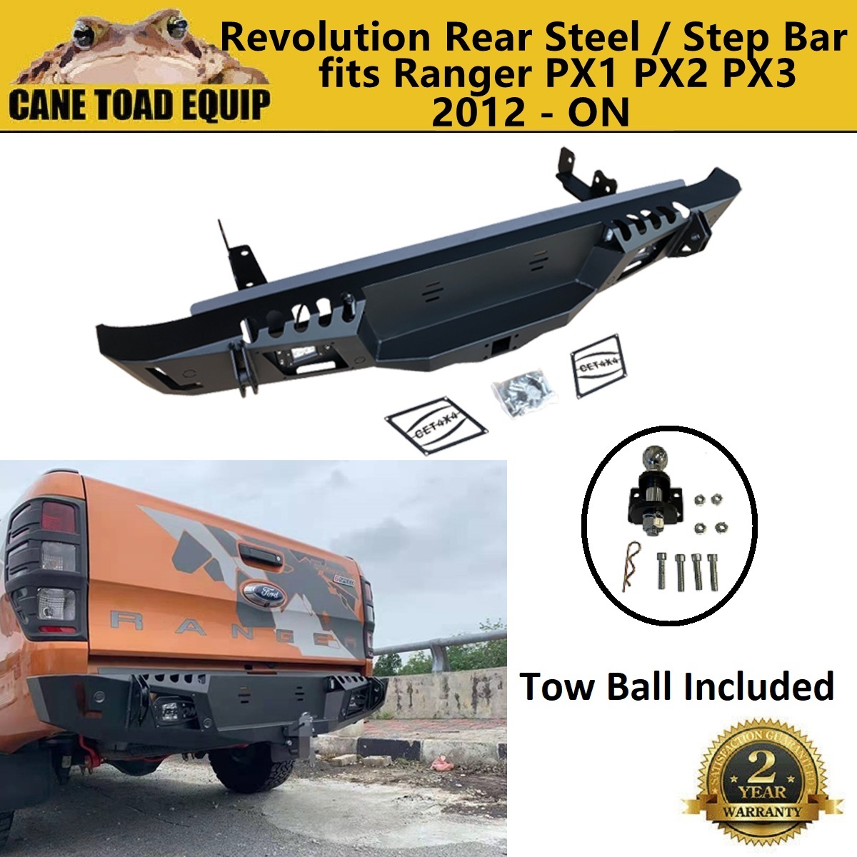 Rear Steel Step Protection Bar Bumper with Towball 50mm For Ford Ranger PX123 2012-ON Mazda BT50 2012-19 Heavy Duty