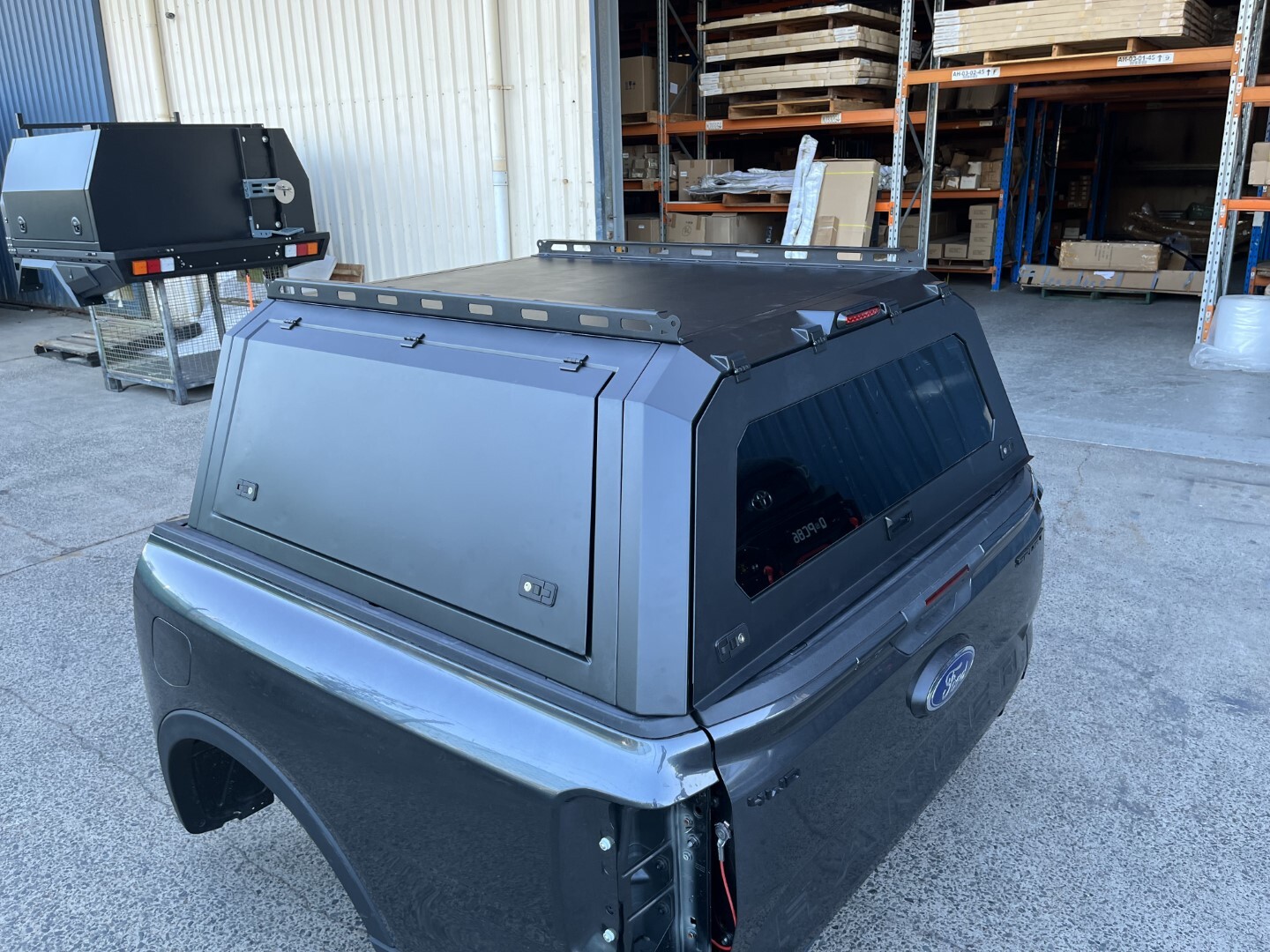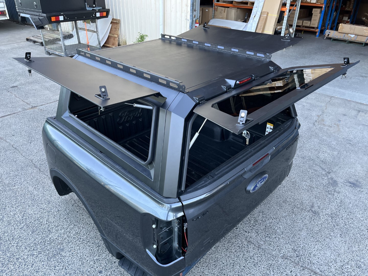 TRADECAP Steel Canopy for Ranger Next Gen 2022-Current & New VW Amarok 2023+ Dual Cab Ute Tub Heavy Duty Matte Black Powder Coated with front and rear