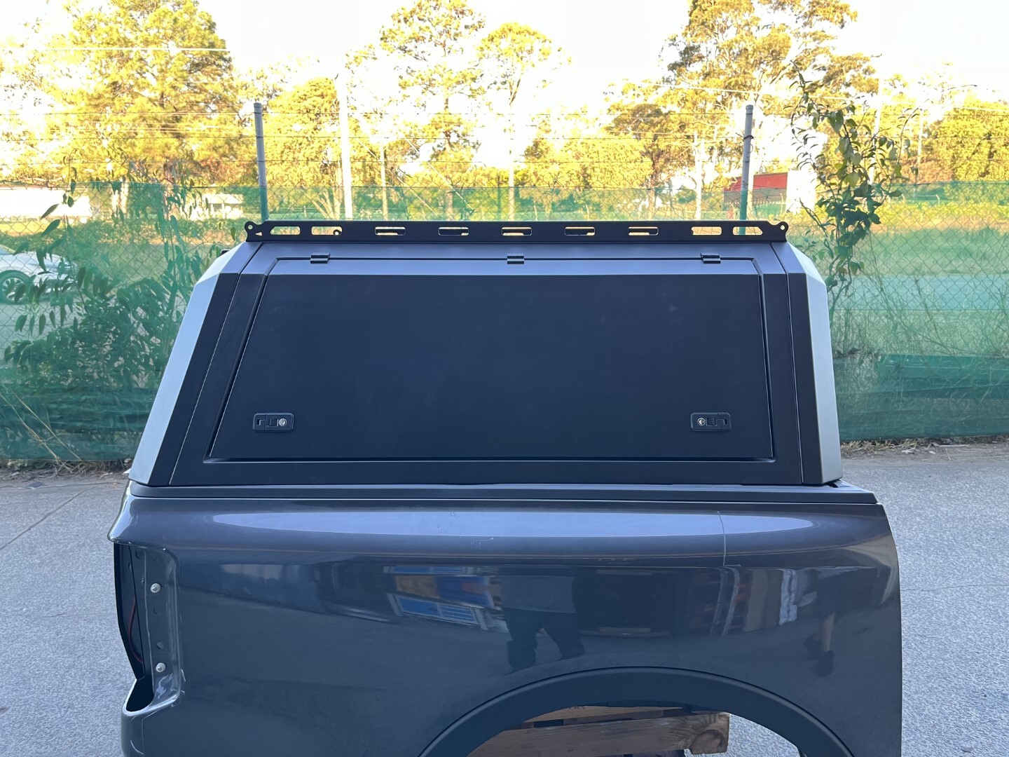Introducing the TRADECAP Heavy Duty Steel Canopy, specially designed to fit Ranger Next Gen 2022+ and New VW Amarok 2023+ Dual Cab Ute Tubs. This canopy comes in a sleek Matte Black Powder Coated finish. If you prefer a different color, you can easily have it spray-painted to match your vehicle's color.